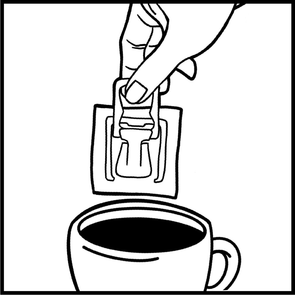 ABRE LAS ASAS Y COLOCA EL FILTRO EN LA TAZA. DOBLA LAS PESTAÑAS PARA UNA MEJOR SUJECIÓN. EL FILTRO ESTÁ ESPECIALMENTE DISEÑADO PARA SUJETARSE EN UNA TAZA DE 8CM DE DIÁMETRO (11OZ / 236 ML).
