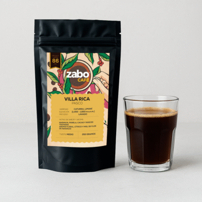 - 1 bolsa de 250 gramos de café en grano ZABOCAFÉ VILLA RICA ORÍGENES™, 100% orgánico, cultivado en el valle de Villa Rica (Pasco) y tostado artesanalmente por especialistas certificados. Ideal para quienes disfrutan del ritual de moler su propio café y buscan la experiencia de un sabor fresco, intenso y auténtico.