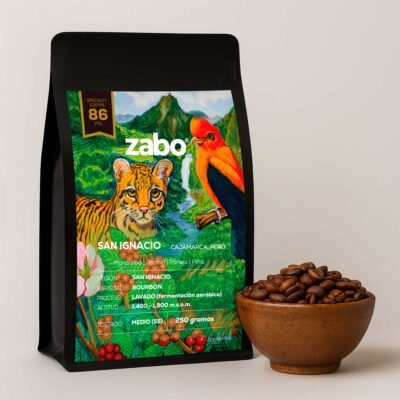 zabocafé ORIGENES™ SAN IGNACIO es un café de especialidad 100% orgánico, cultivado en San Ignacio (Cajamarca) y tostado por expertos para resaltar notas de mandarina, jazmín, panela y piña.